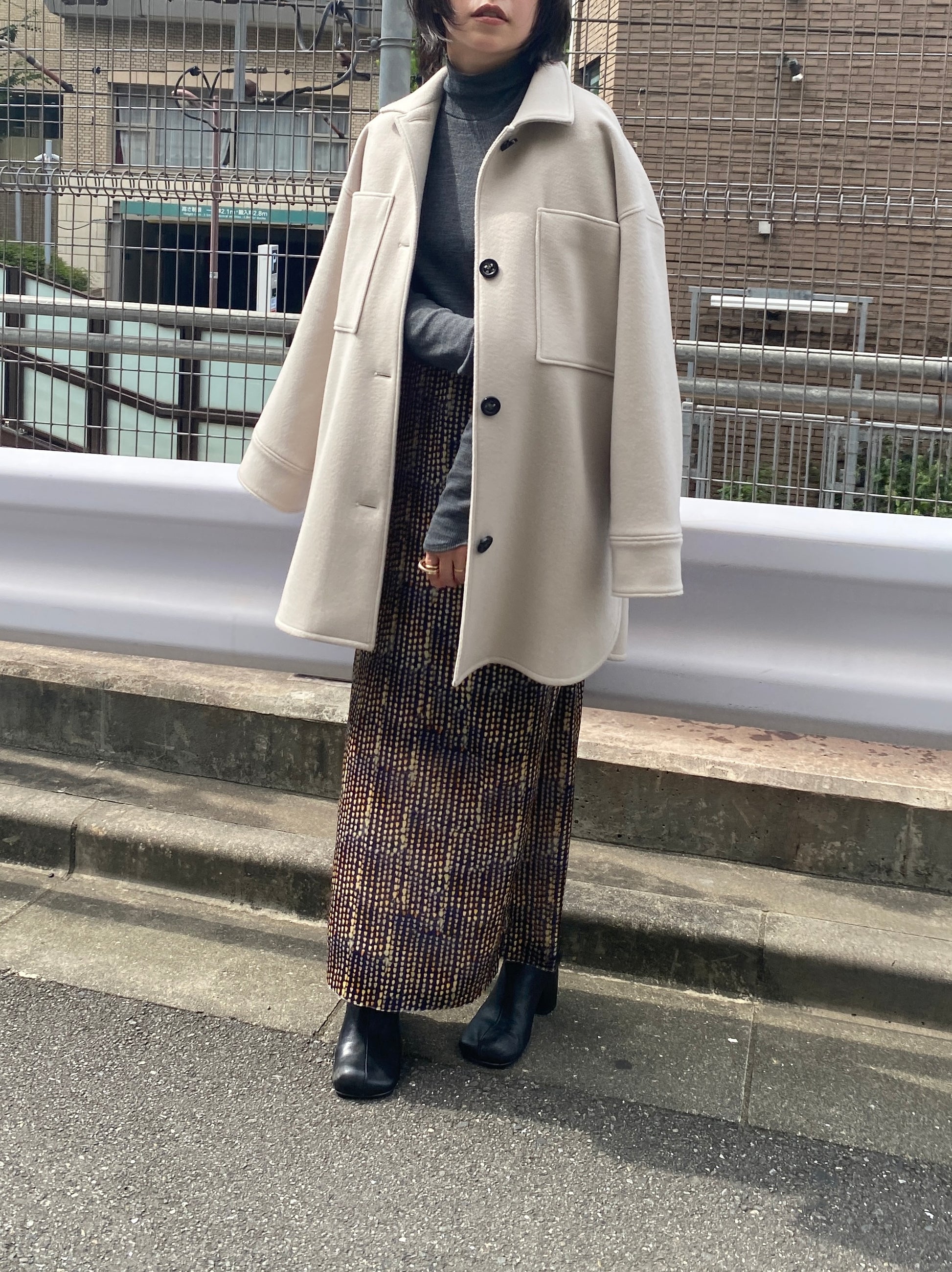 足元はブーツでもフラットシューズでも相性が良く、幅広いシーンで活躍します。