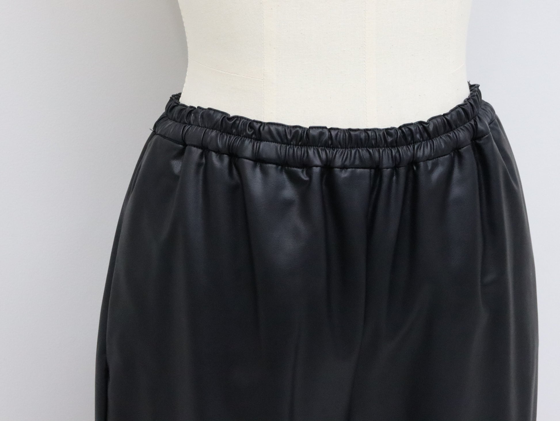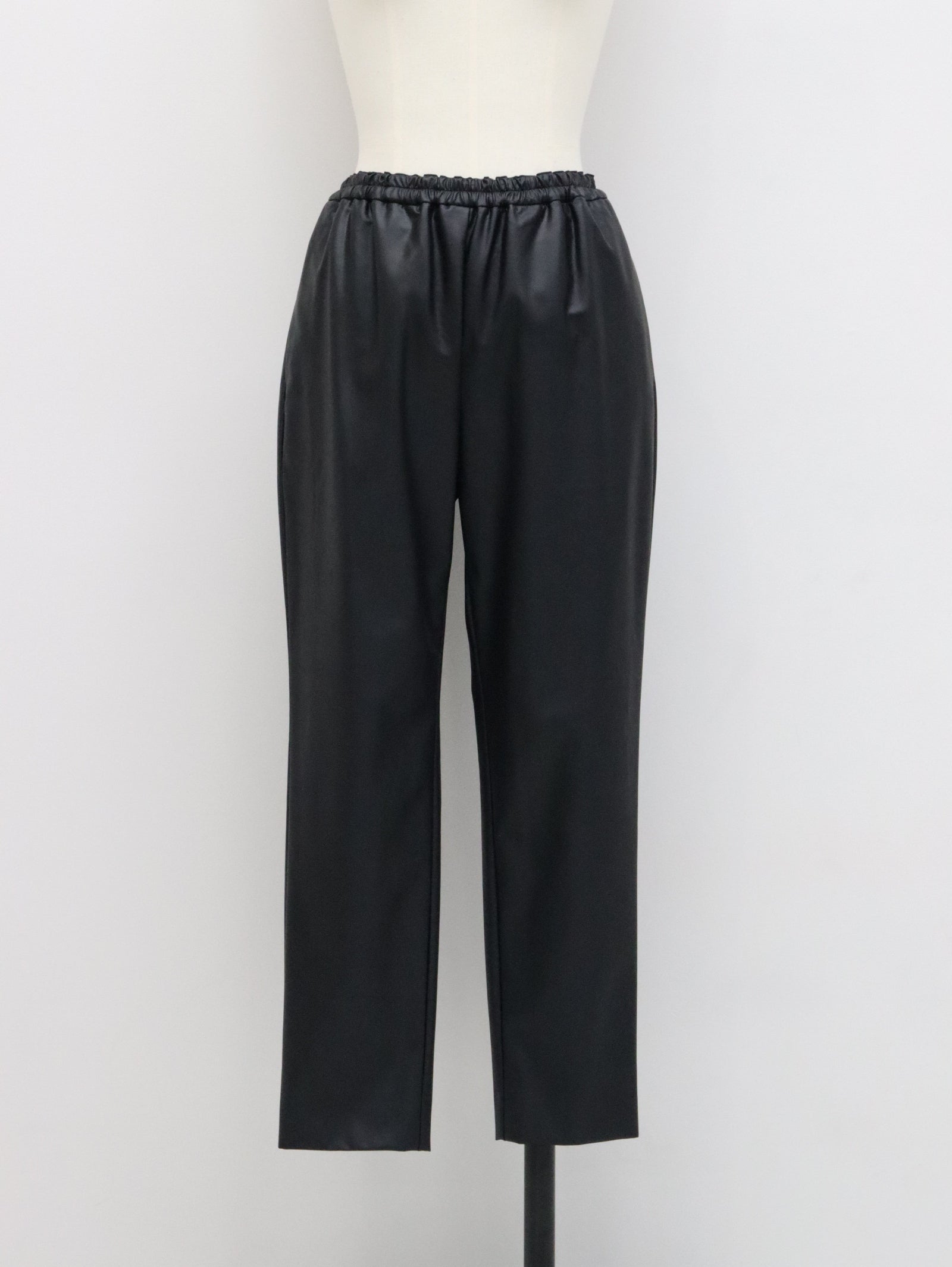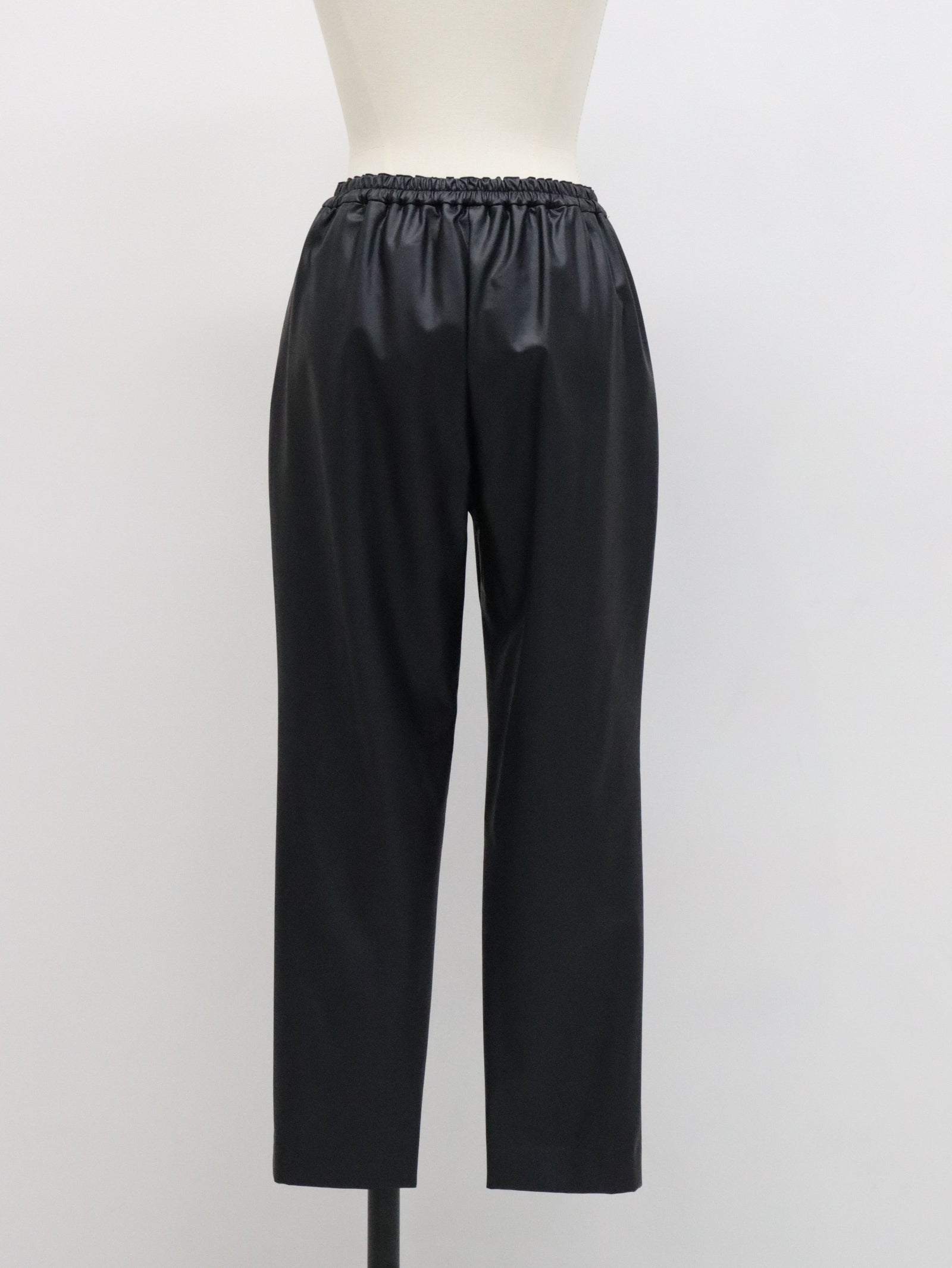 アンティーク感のあるフェイクレザーを使用したテーパードパンツ。