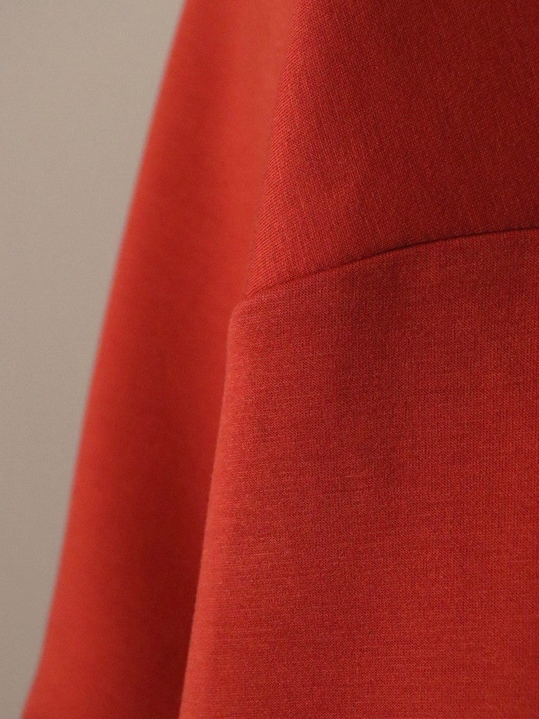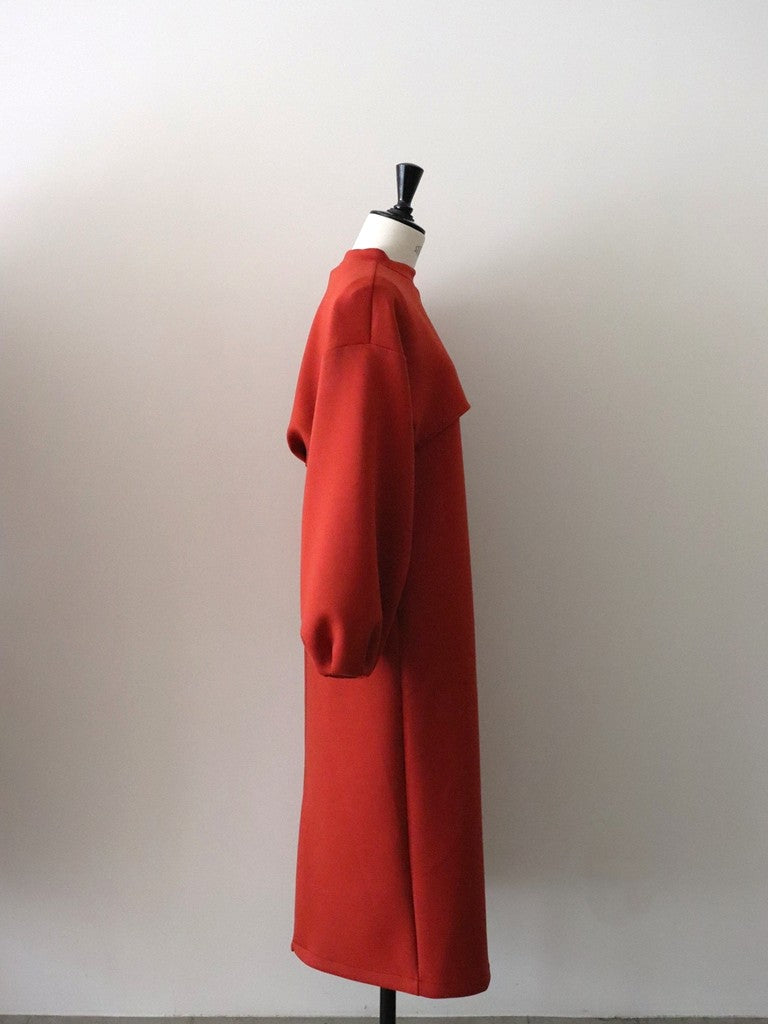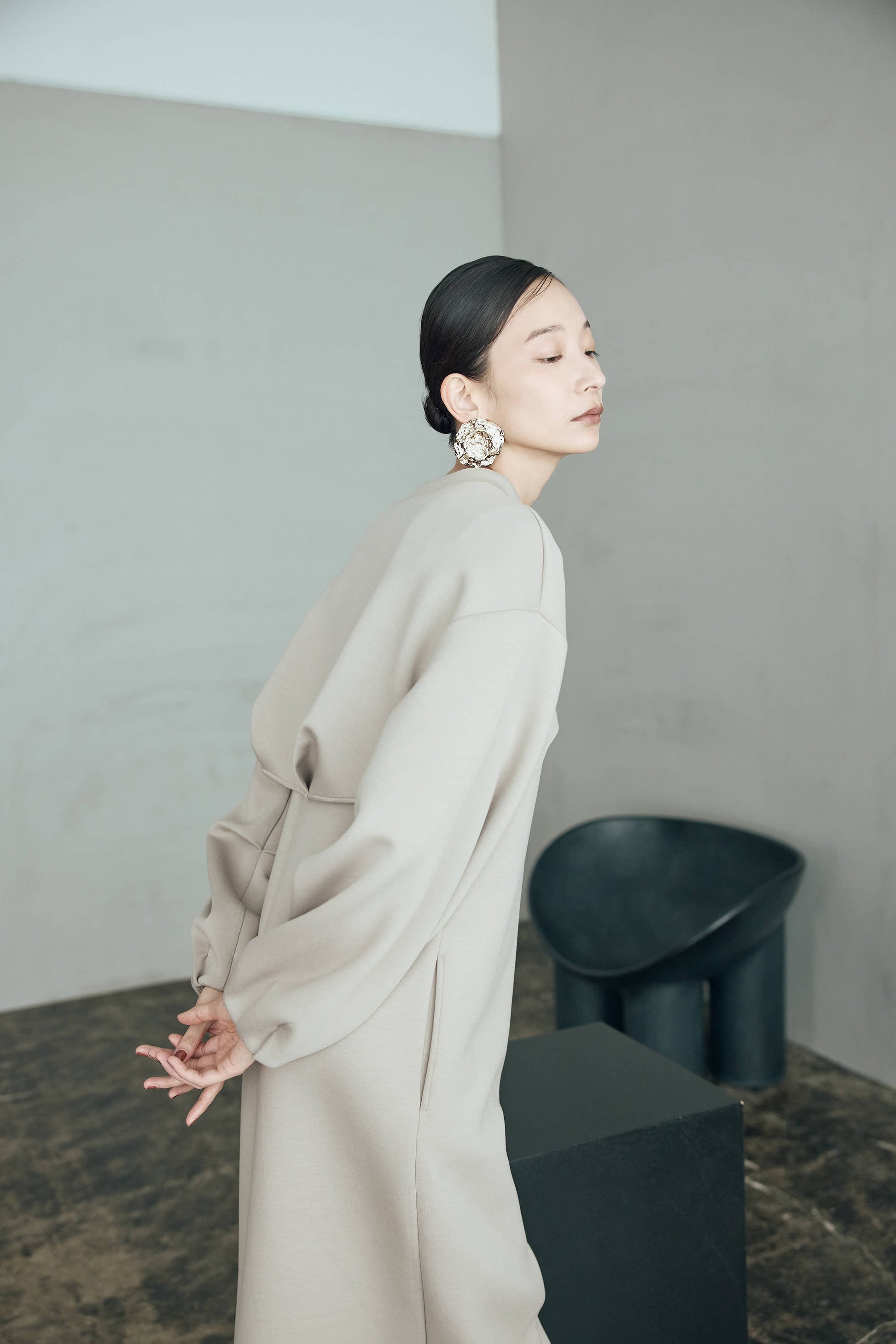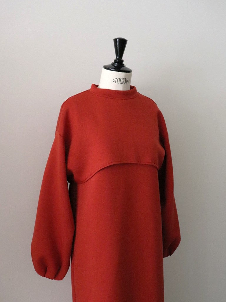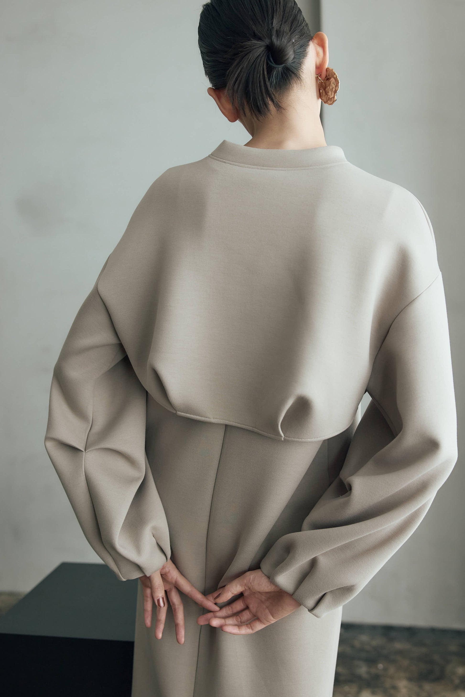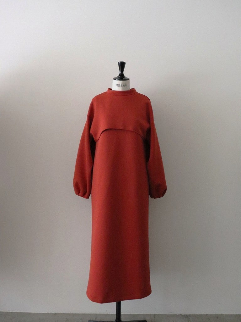 シンプルなワンピースに丸みのあるスリーブが印象的なプルオーバーを重ねることで奥行きのあるスタイリングを楽しめます。