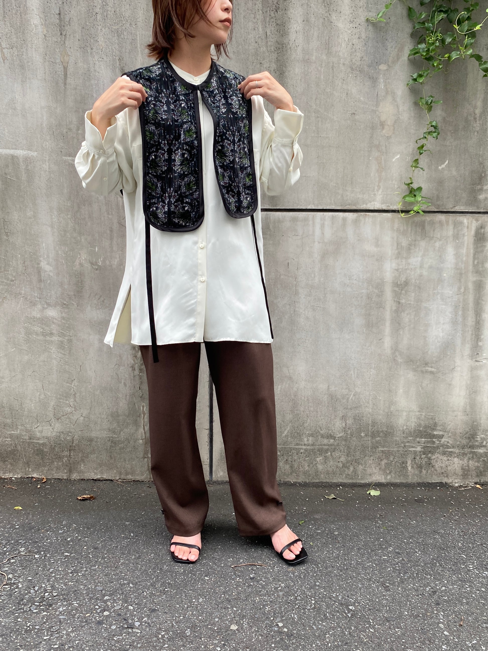 サテン特有の華やかさを程よく抑え、デイリーにも取り入れやすく仕上げました。