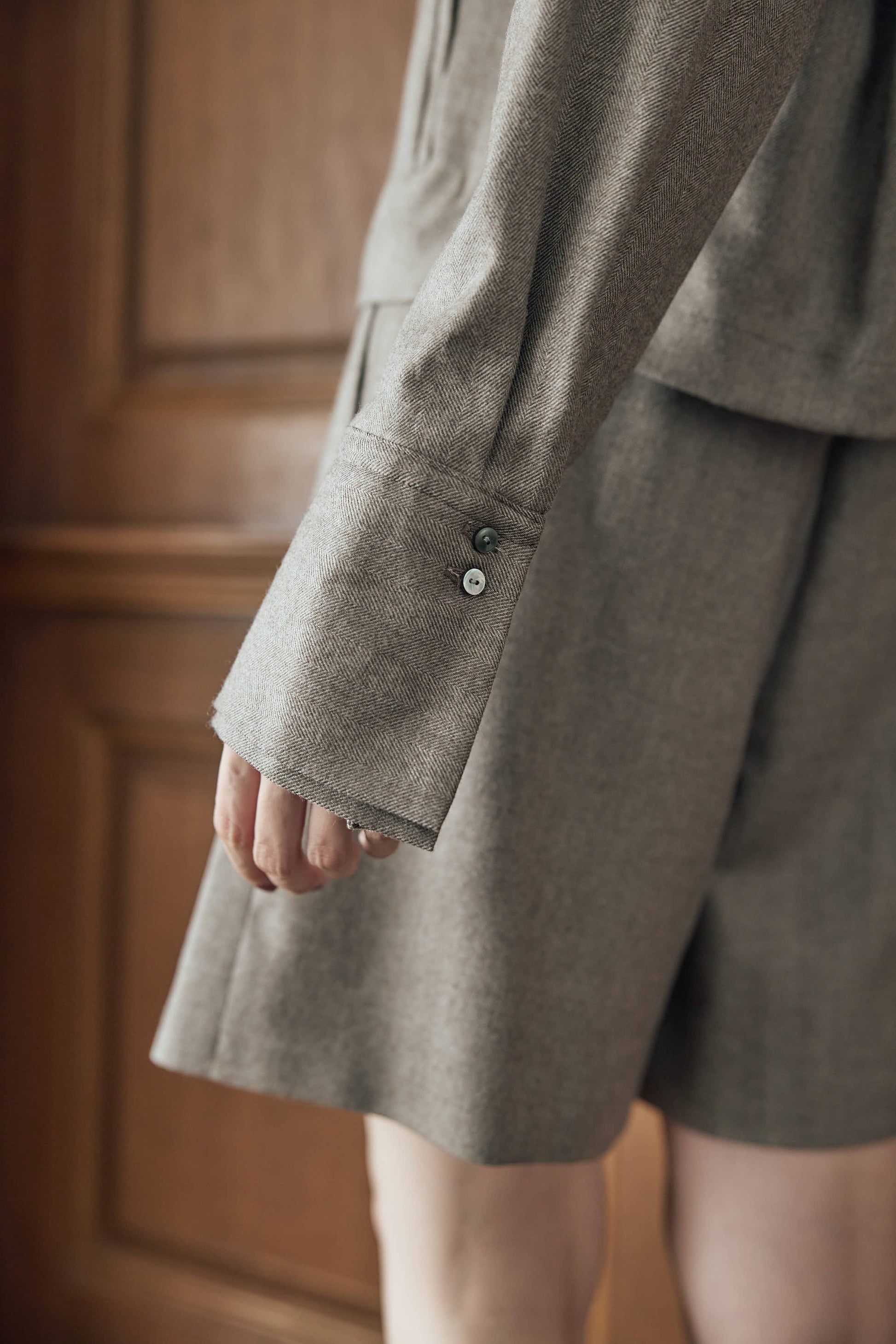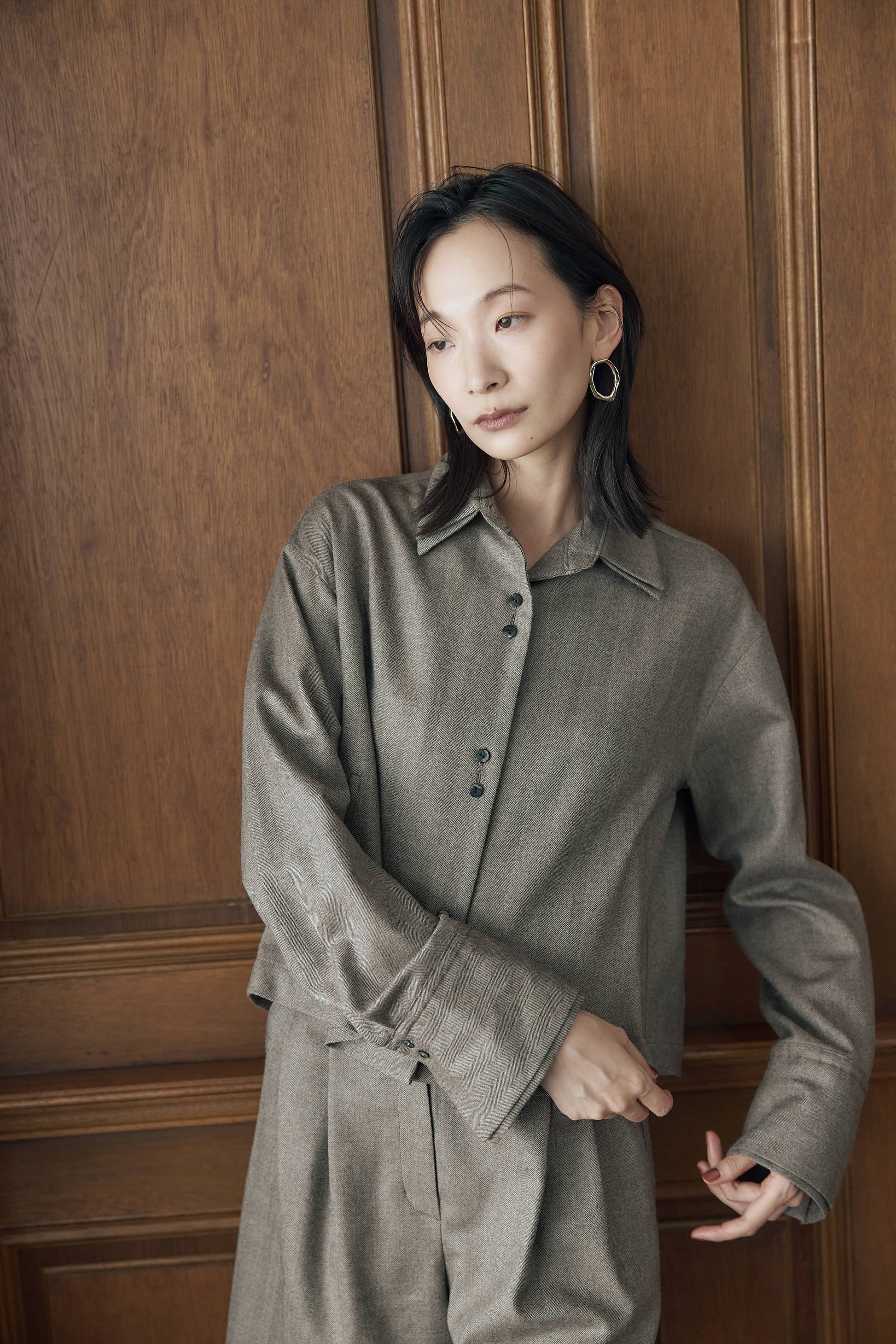 ウールに樹脂加工を施した先染め素材を使用したショートシャツ