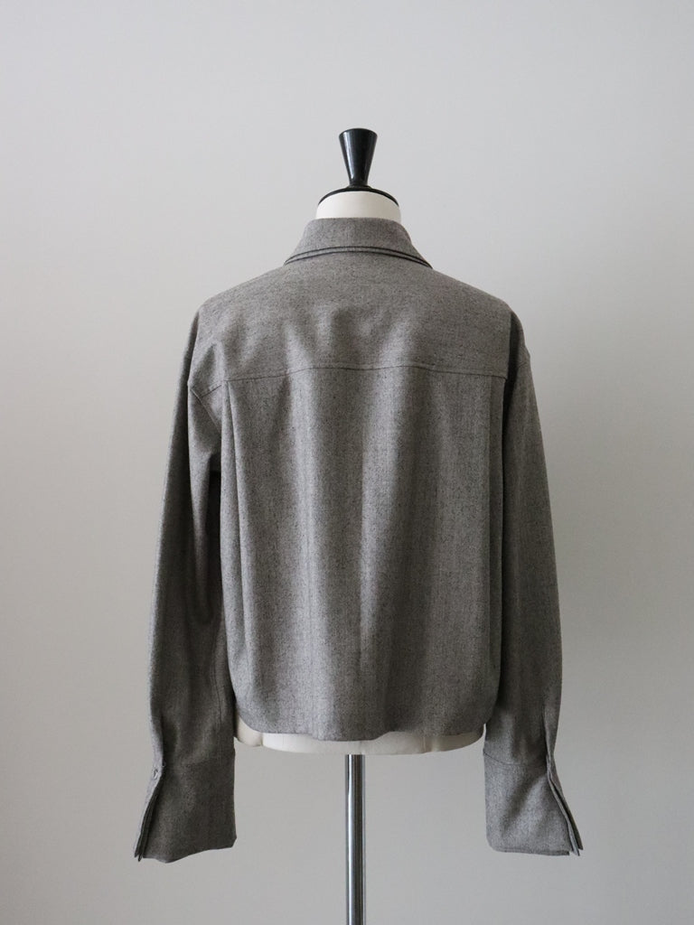 ウールに樹脂加工を施した先染め素材を使用したショートシャツ