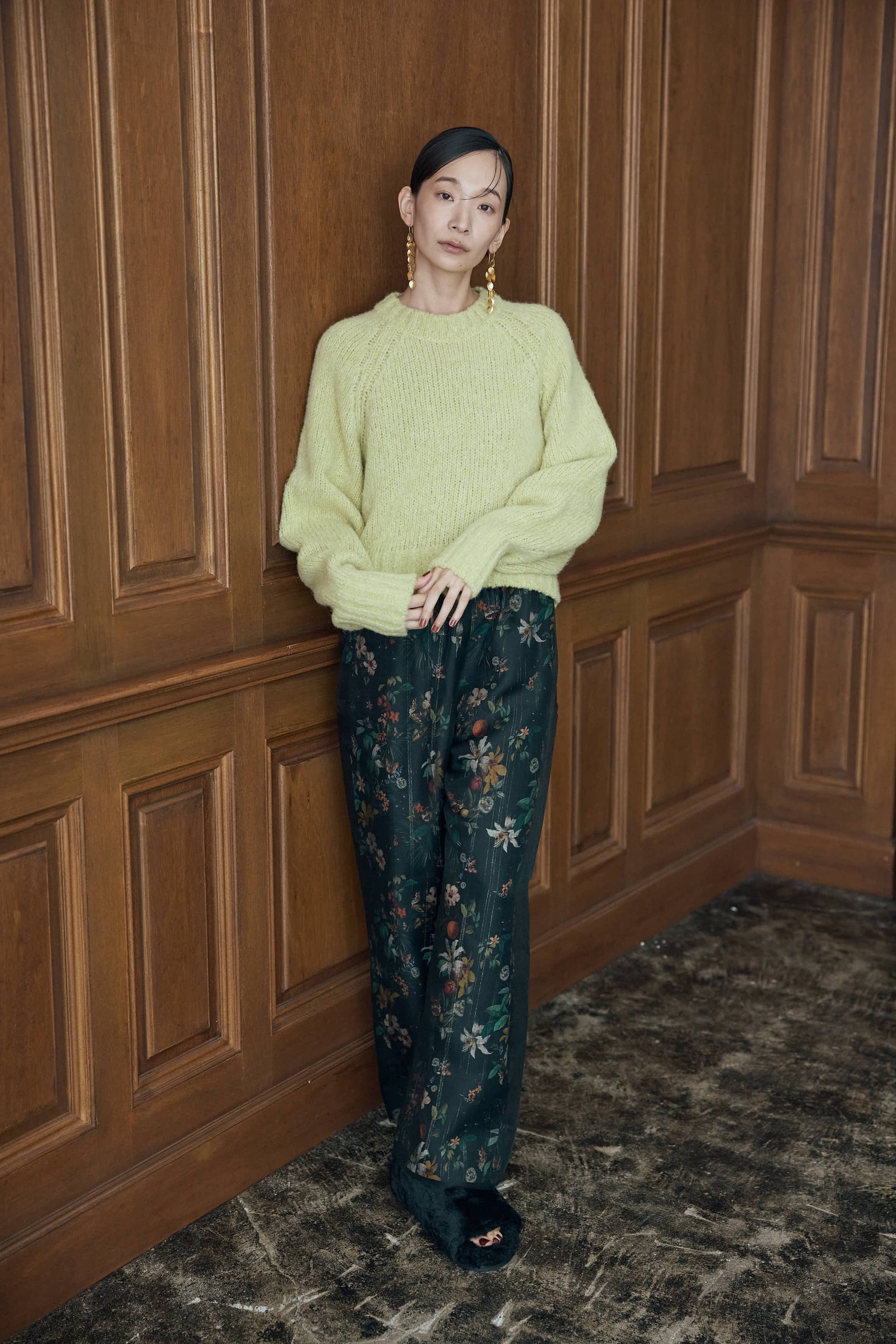 なめらかな落ち感のあるビスコースに、ラメ糸を織り込んだ上品な光沢感のある生地は、鮮やかなボタニカルフラワープリント。