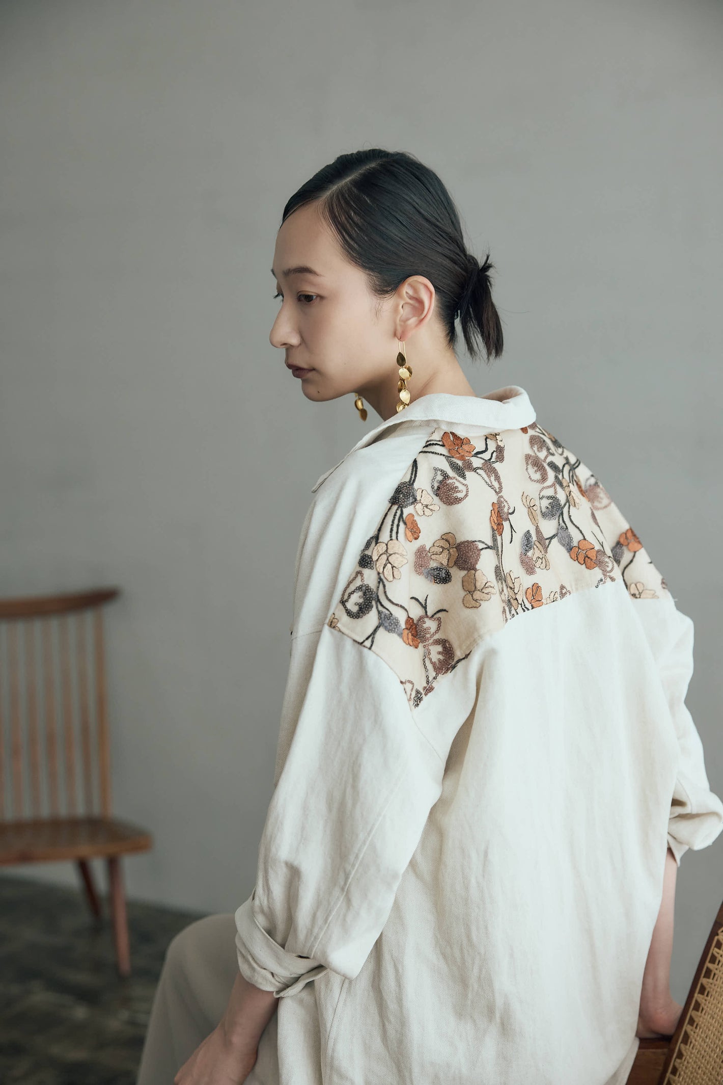 サキソニーヘリンボーンコンパクトシャツ(ブラウン)