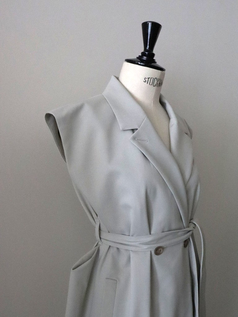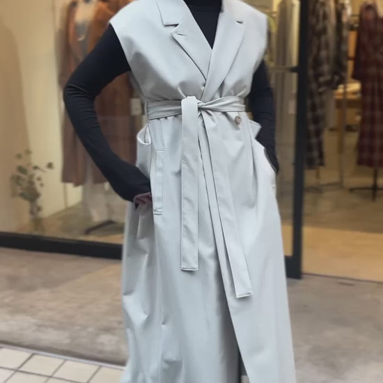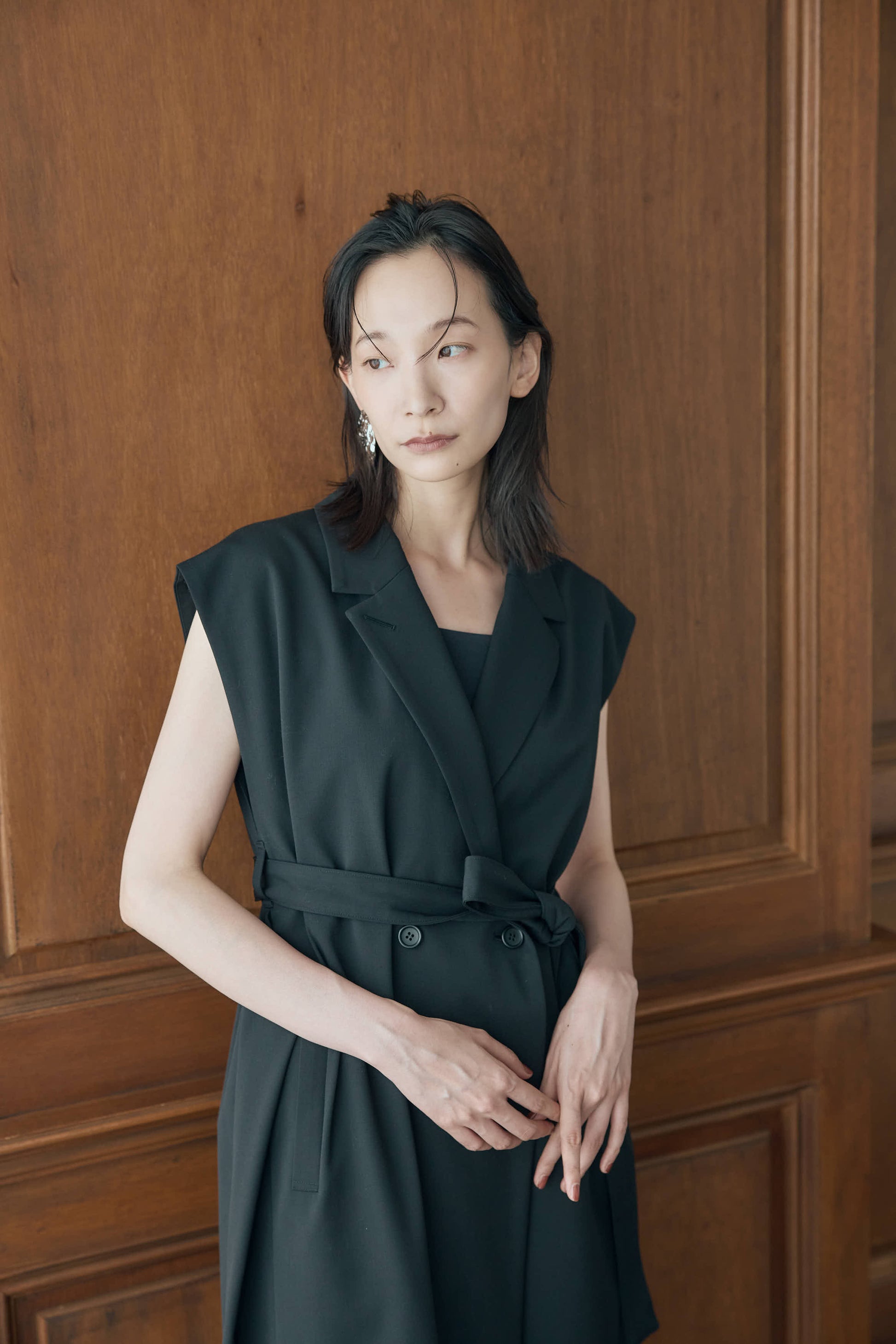 ベルト付きジレはウエストを引き締め、洗練されたバランスを生み出してくれます。