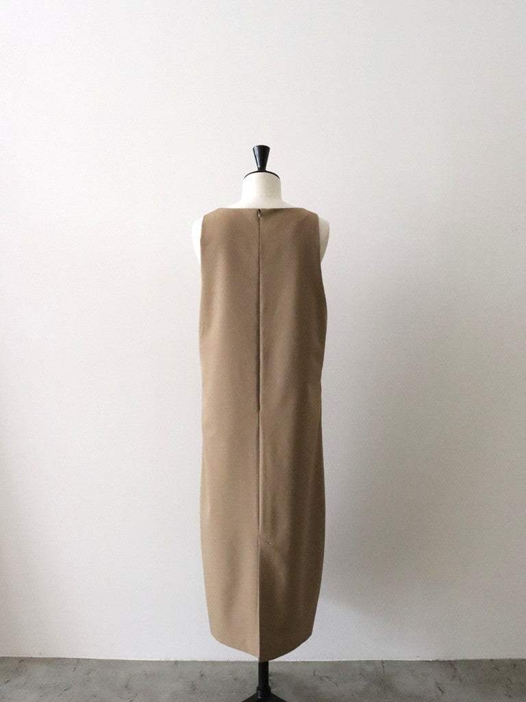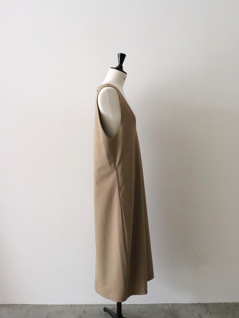 ウールギャバUネックワンピース(キャメル)