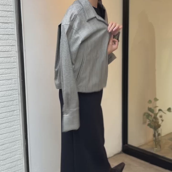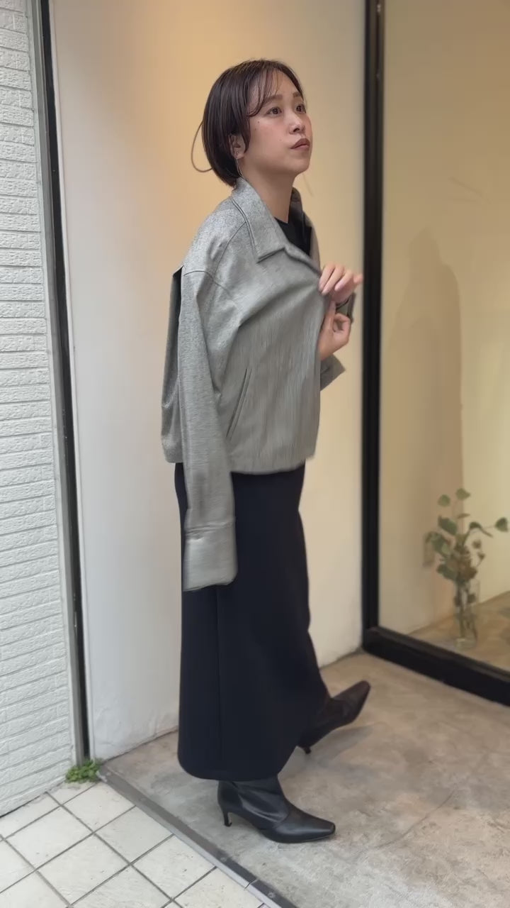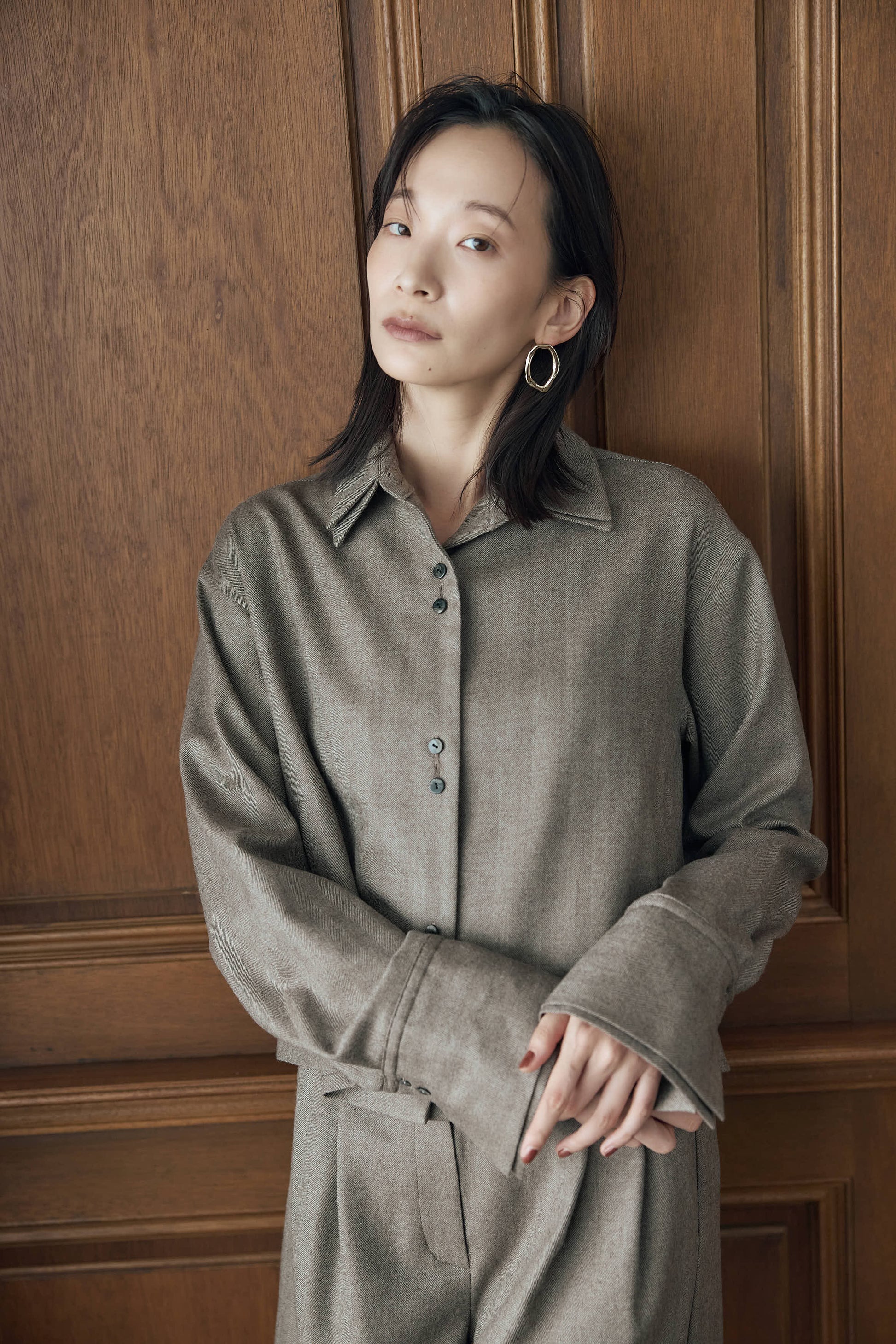 二重に重なった襟が顔まわりを印象的に見せ、フロントの2個付けボタンがさりげないデザインポイントに。