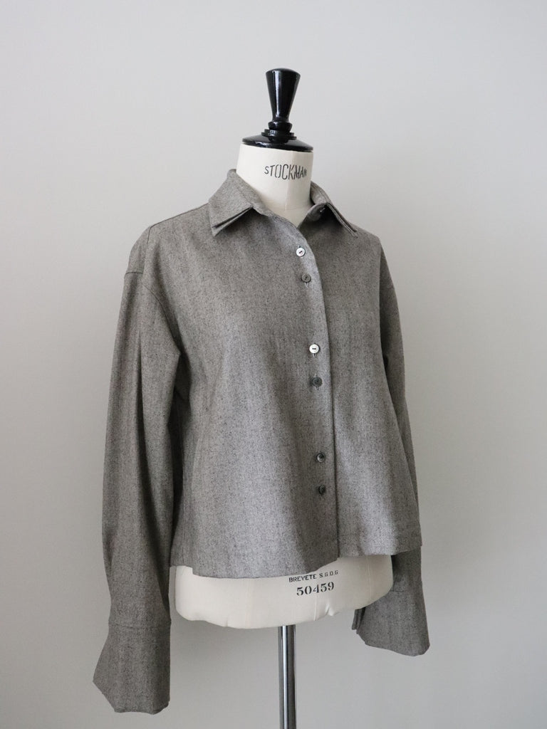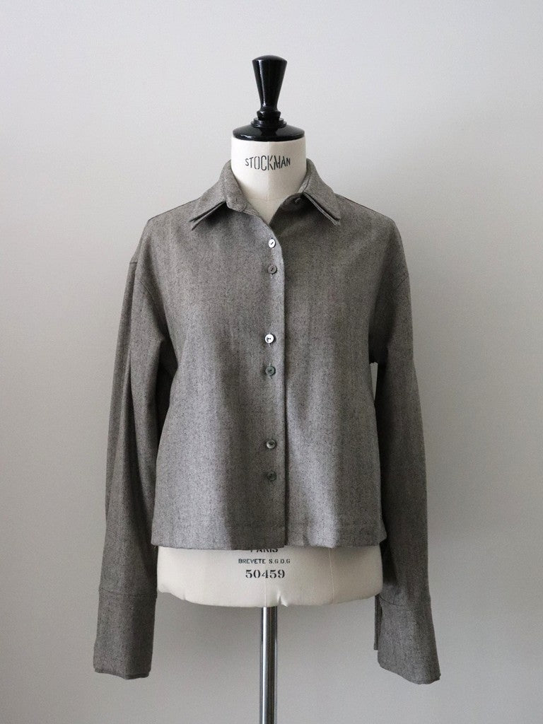 ウールに樹脂加工を施した先染め素材を使用したショートシャツ
