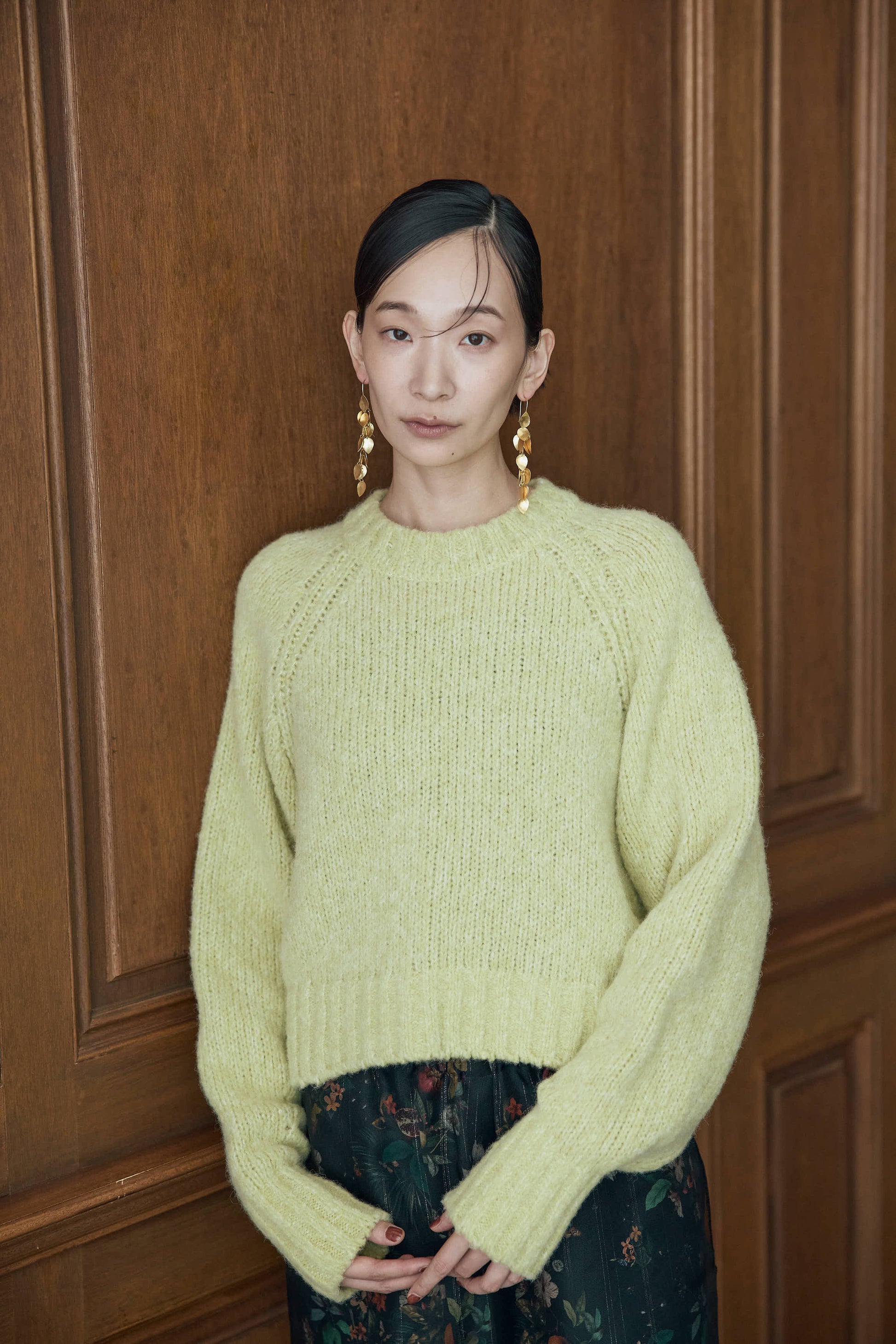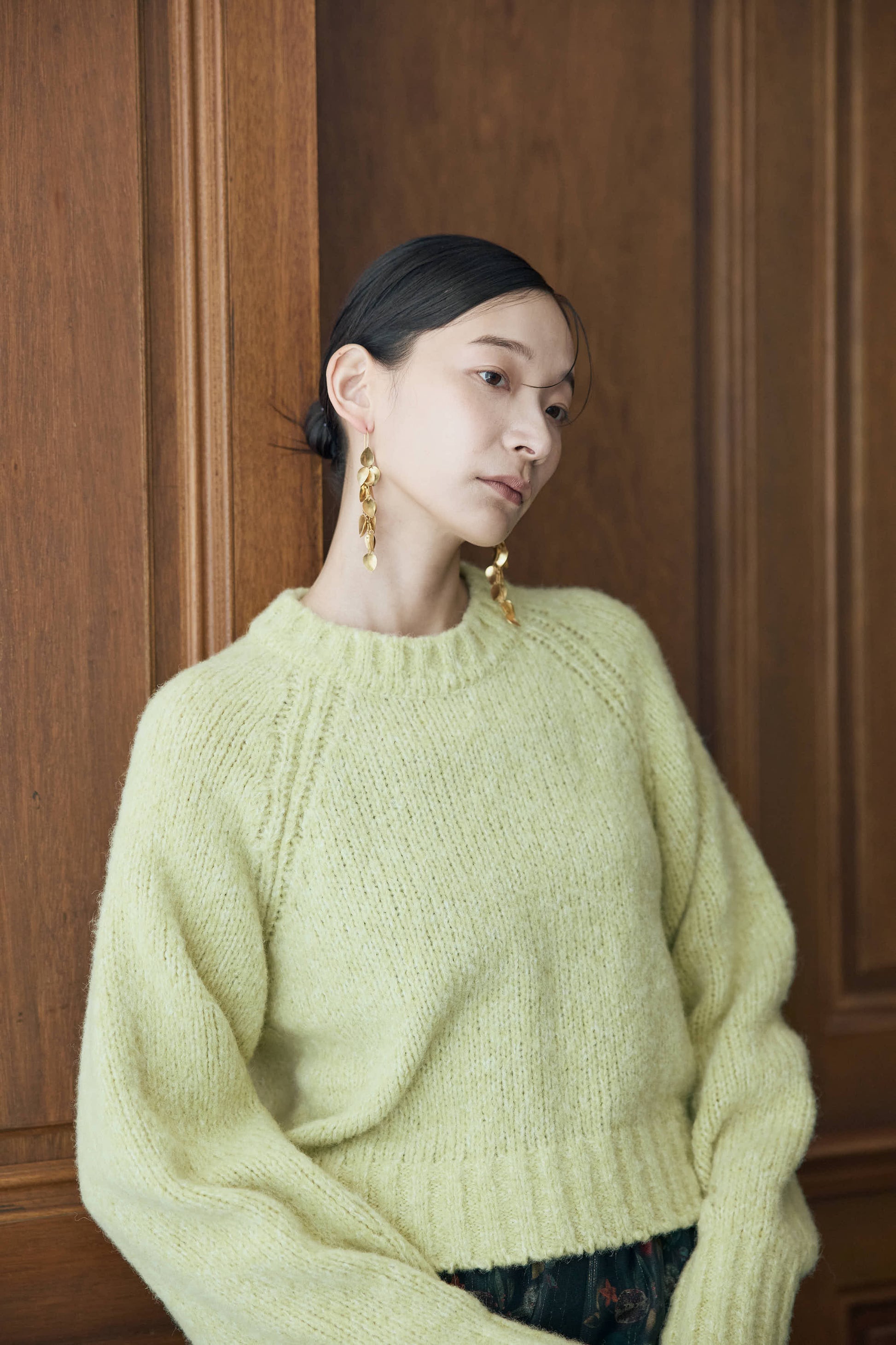 季節ならではの毛足のある素材感で、シーンムードを盛り上げるプルオーバーニット。