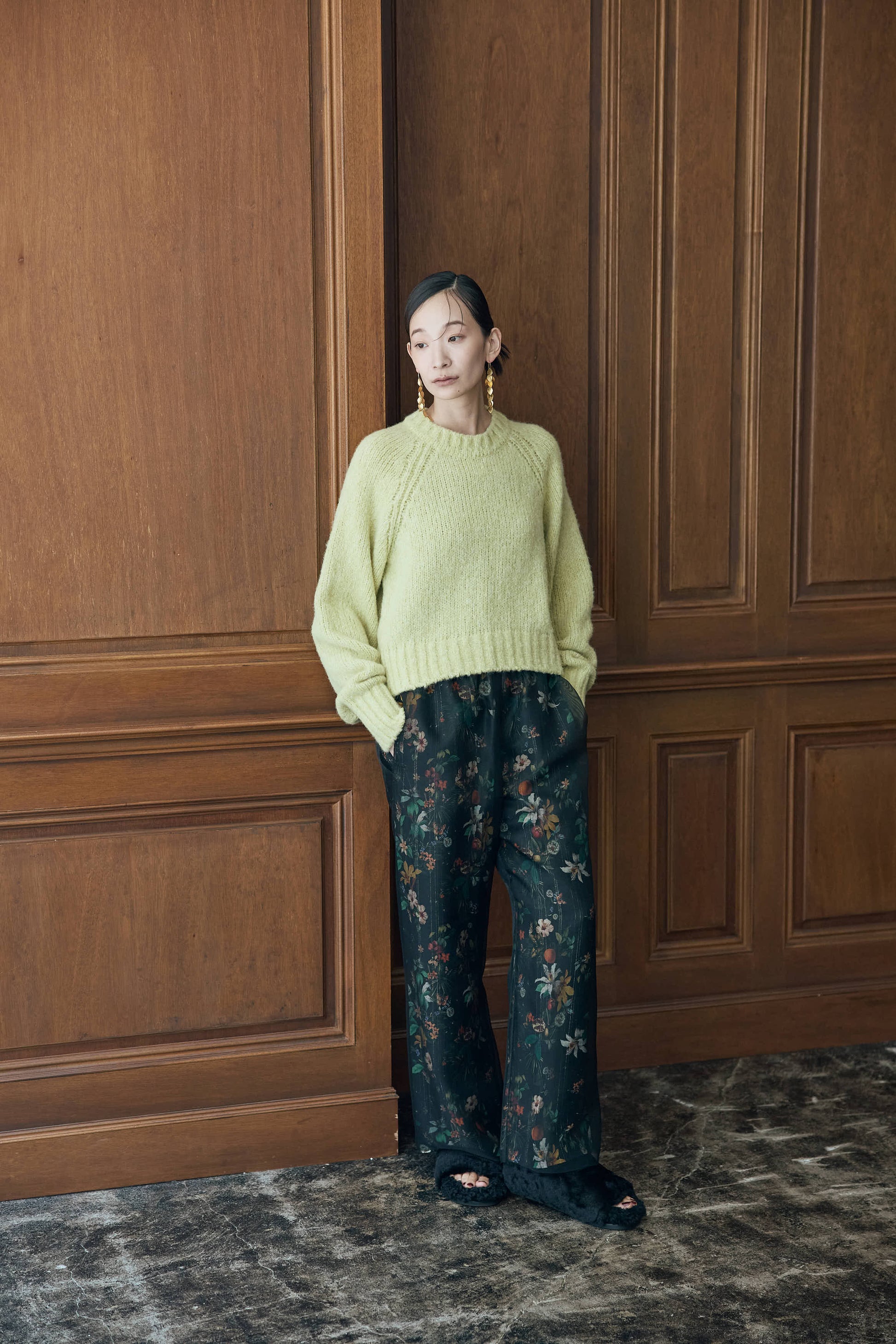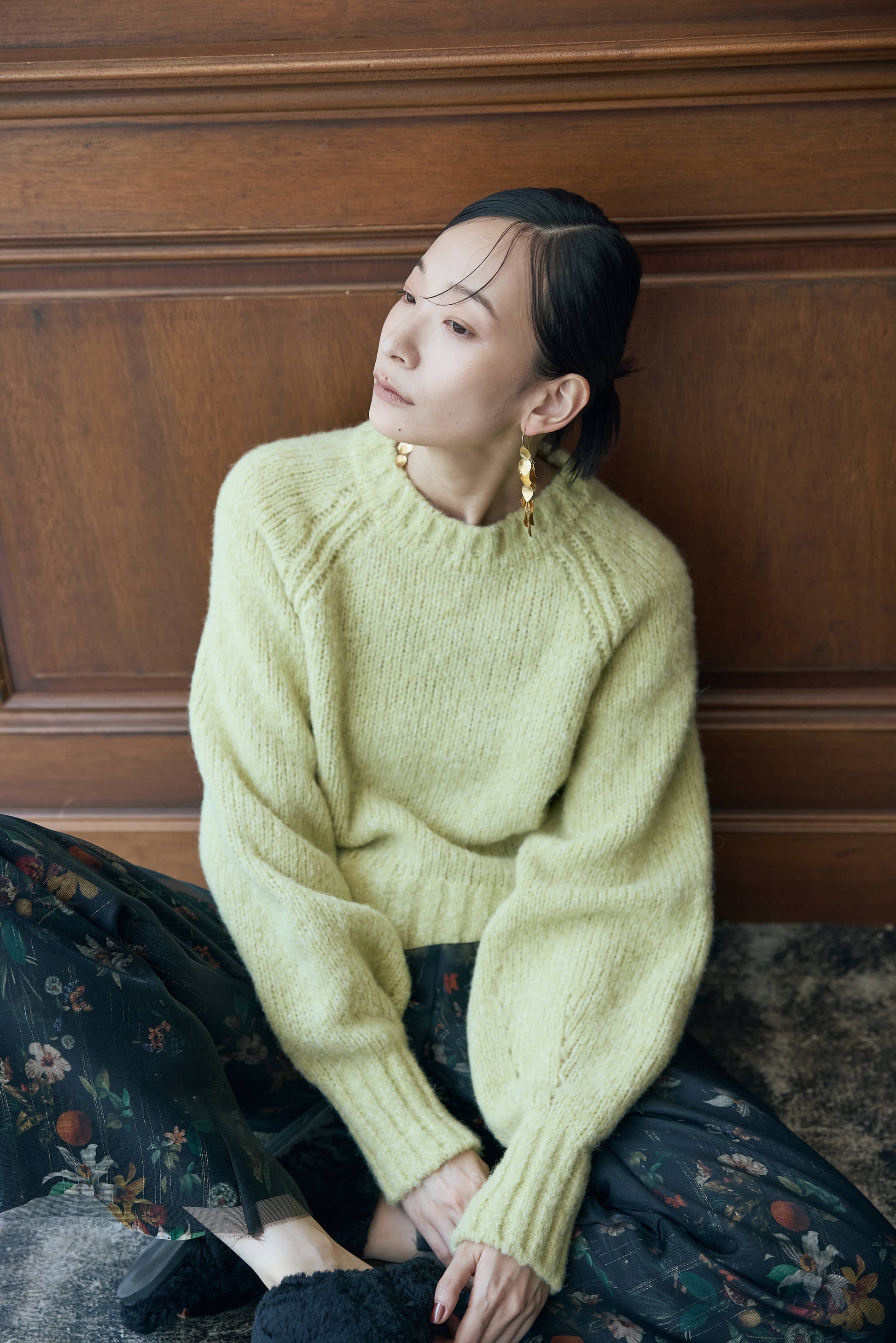 季節ならではの毛足のある素材感で、シーンムードを盛り上げるプルオーバーニット。