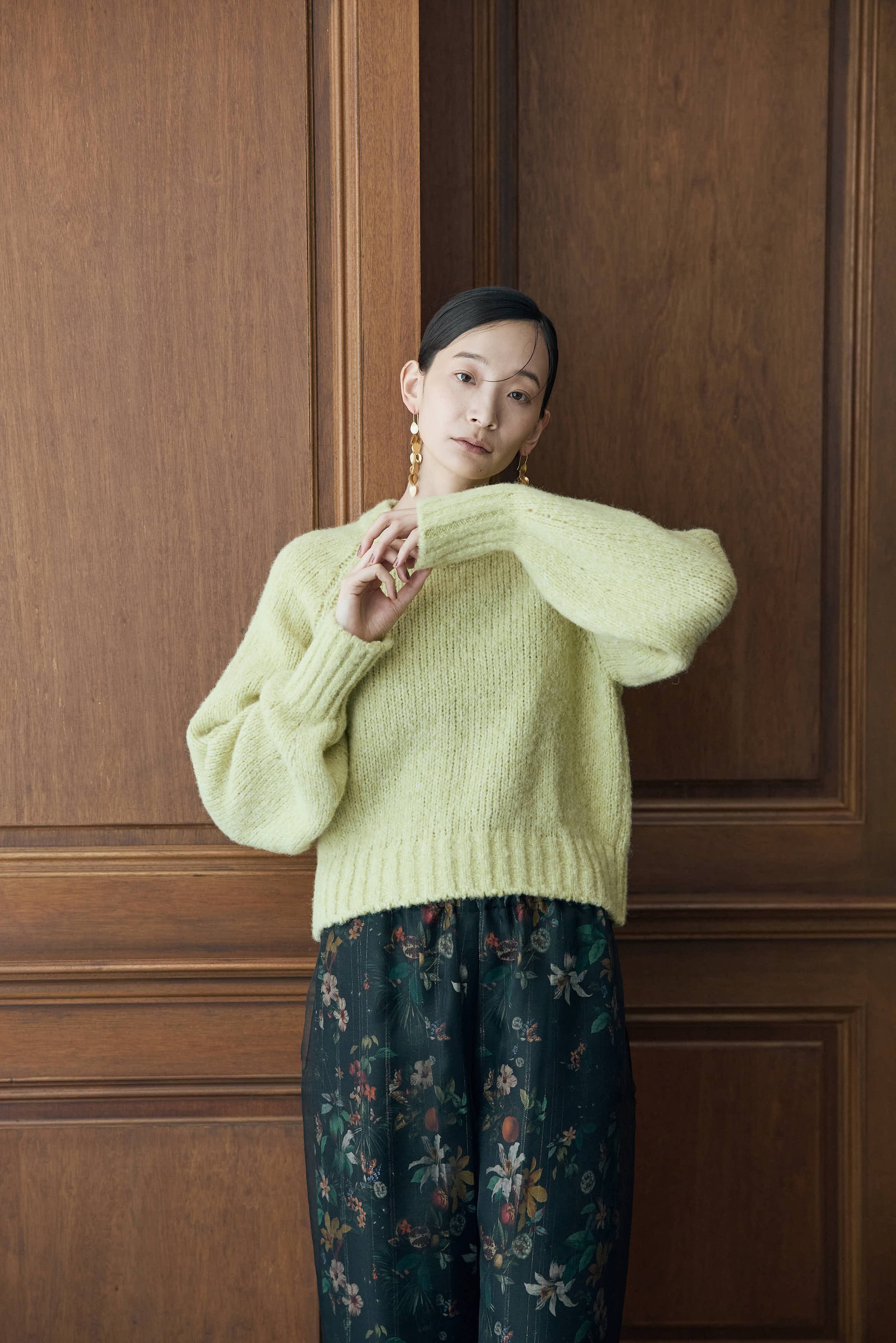 ちくちく感はなく、コンパクトな丈感とボリューム感のあるお袖がポイントです。キレイ色のイエローや落ち着いたブルー、トレンド感の強いレッド、ベーシックアイボリーと、カラーバリエーションにも注目!