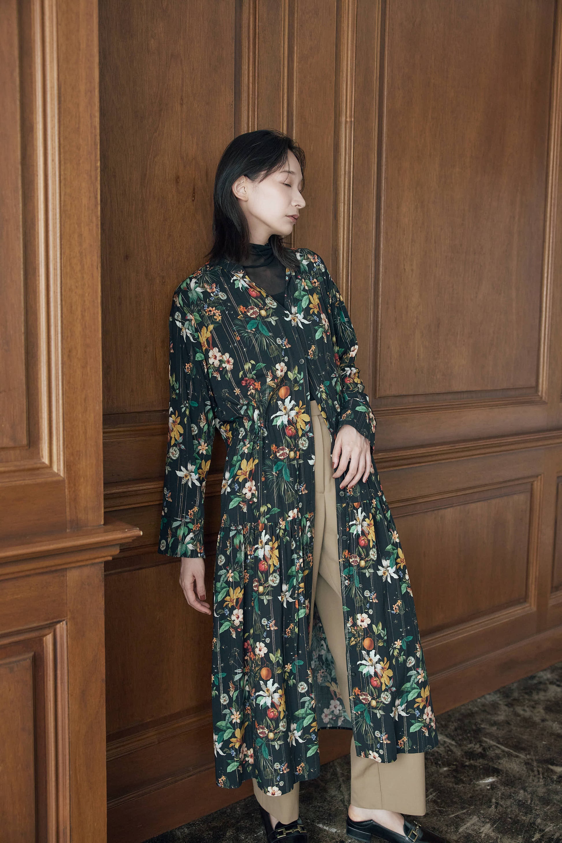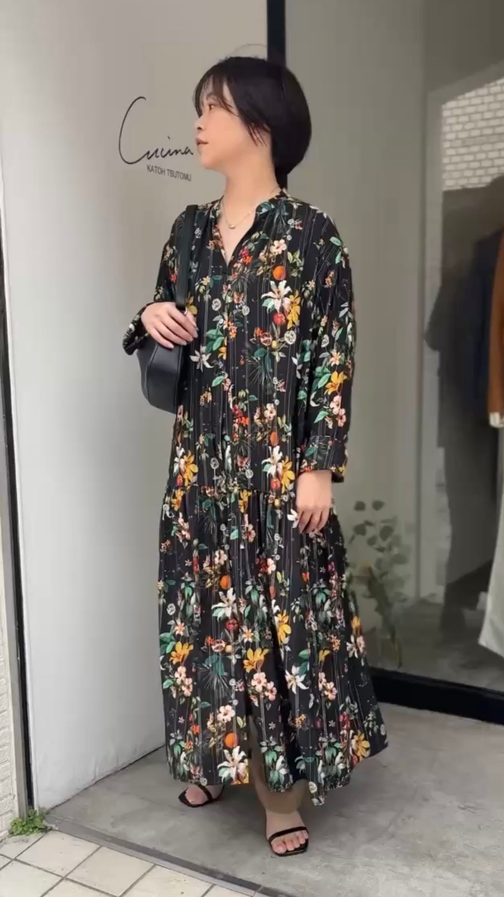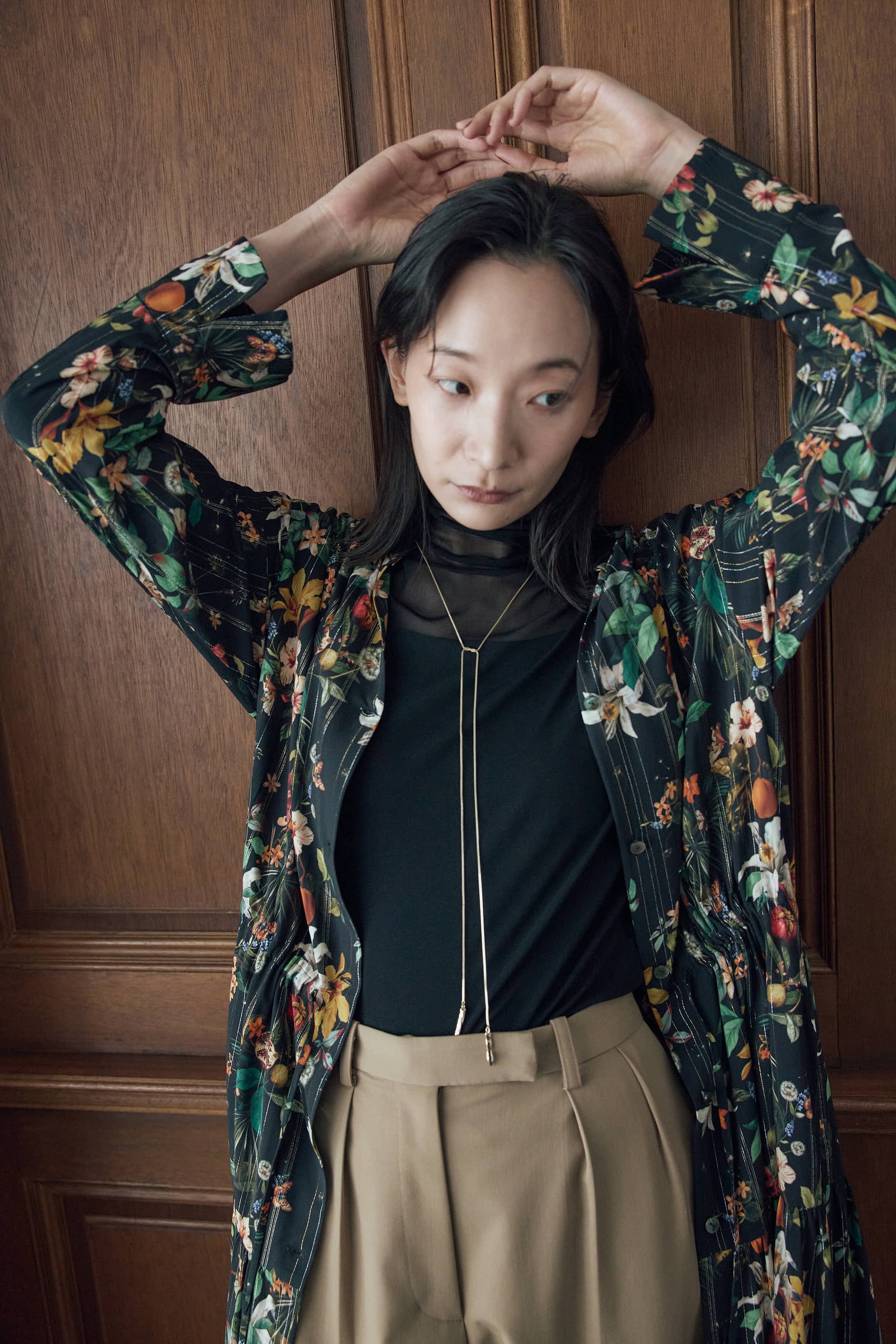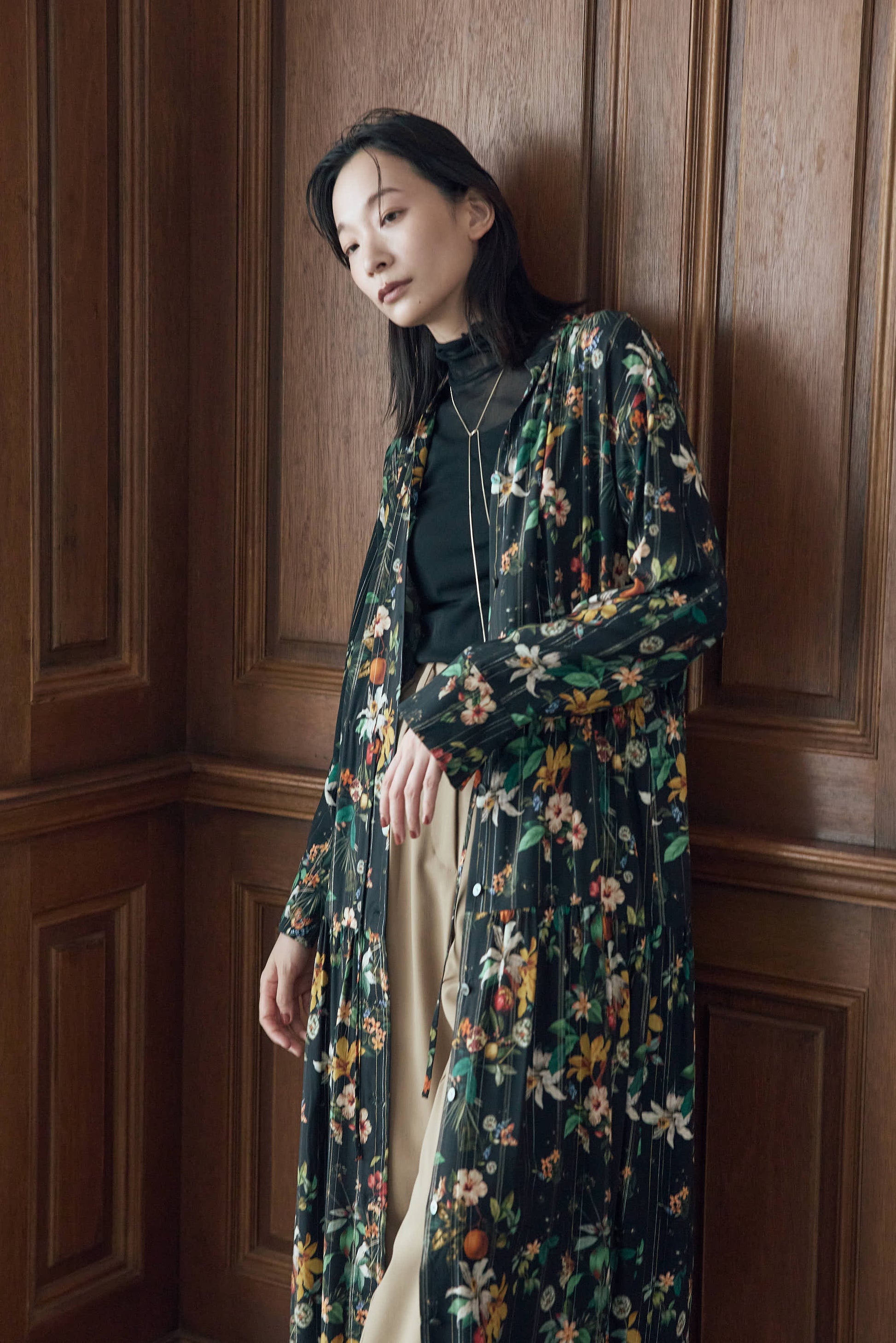 ボタンを全て閉じてワンピースとして着用するとグッと存在感のある1枚に。